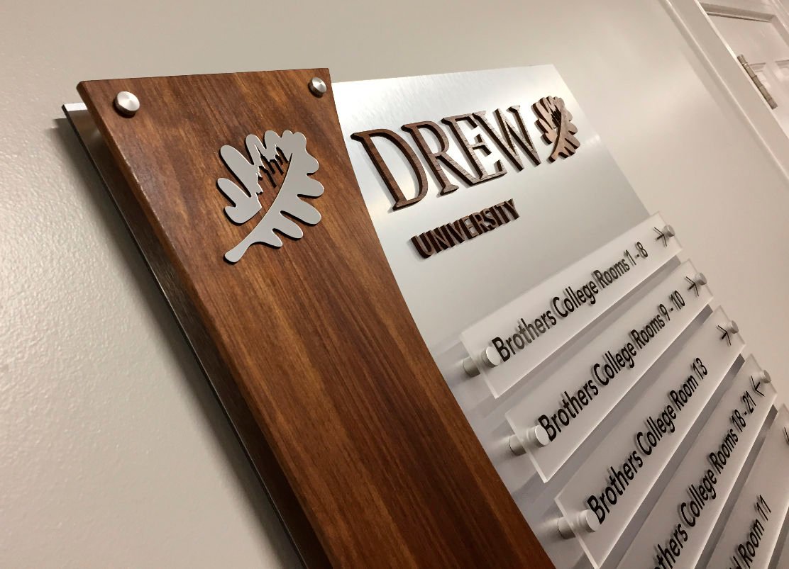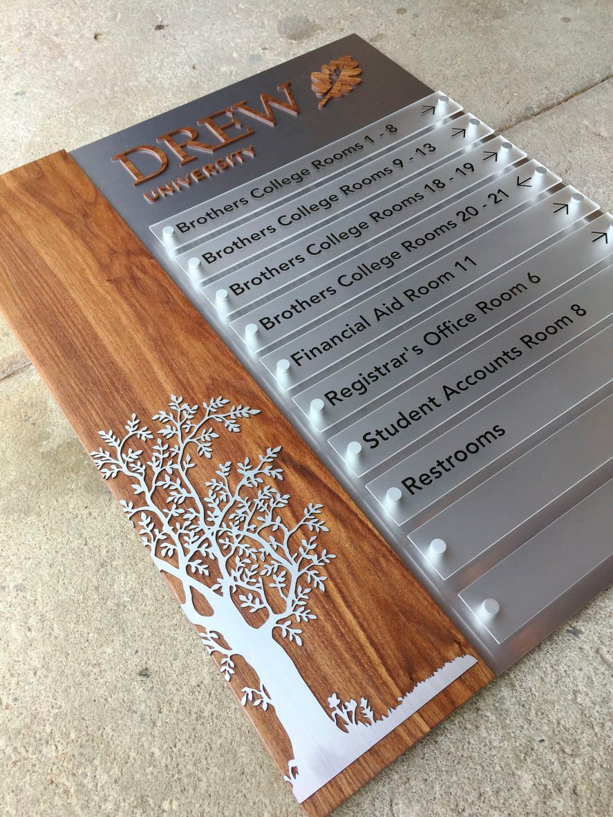 Modern wood wayfinding Building directory